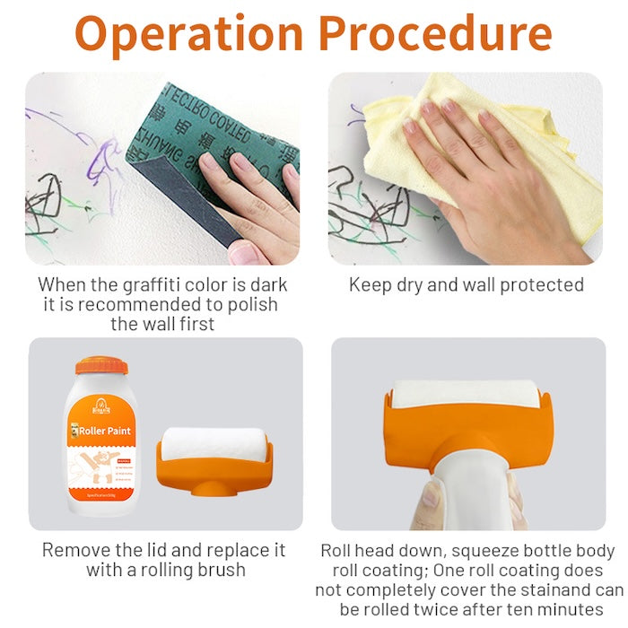 No more living with stained or damaged walls. With the large integrated roller, you can cover marks, scratches, and discoloration in just minutes.